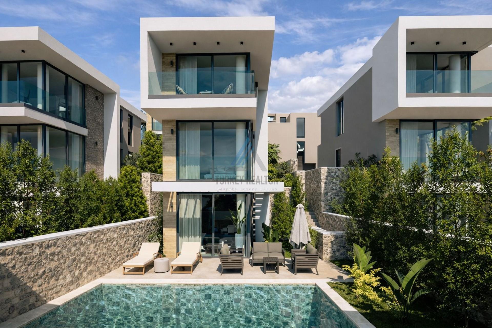 Each villa features its own private garden, spacious terraces, and swimming pool, offering a completely personal and serene living environment for you and your loved ones. The open and airy architectural design, natural stone textures, and contemporary interiors combine to deliver a holiday-inspired lifestyle with year-round comfort.With its flexible floor plans, architecture in harmony with nature, select sea-view residences, and a modern, secure living concept, this exceptional project appeals to both homeowners and investors alike. Whether for permanent living or investment, this distinguished development invites you to step into a truly privileged way of life.