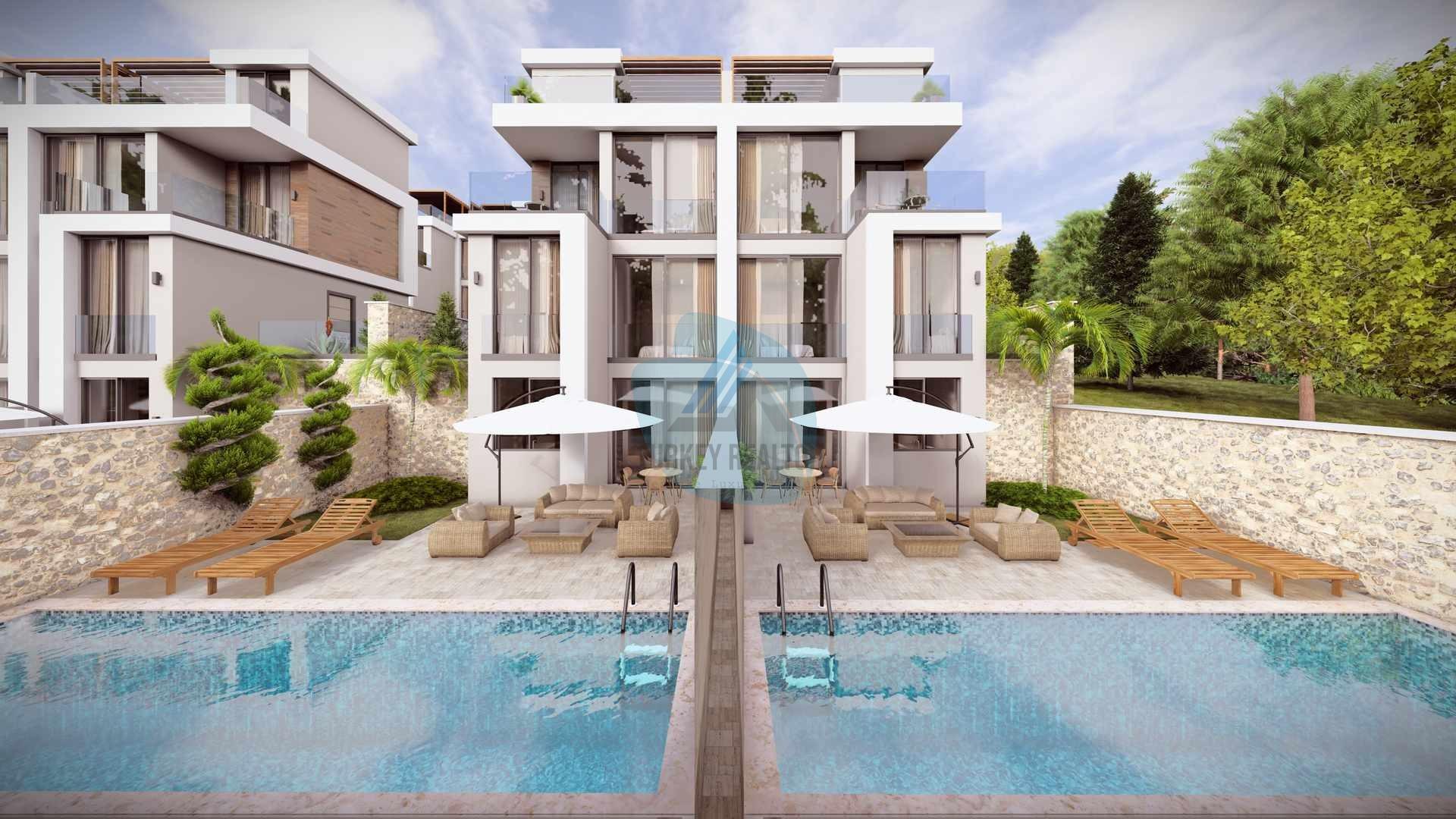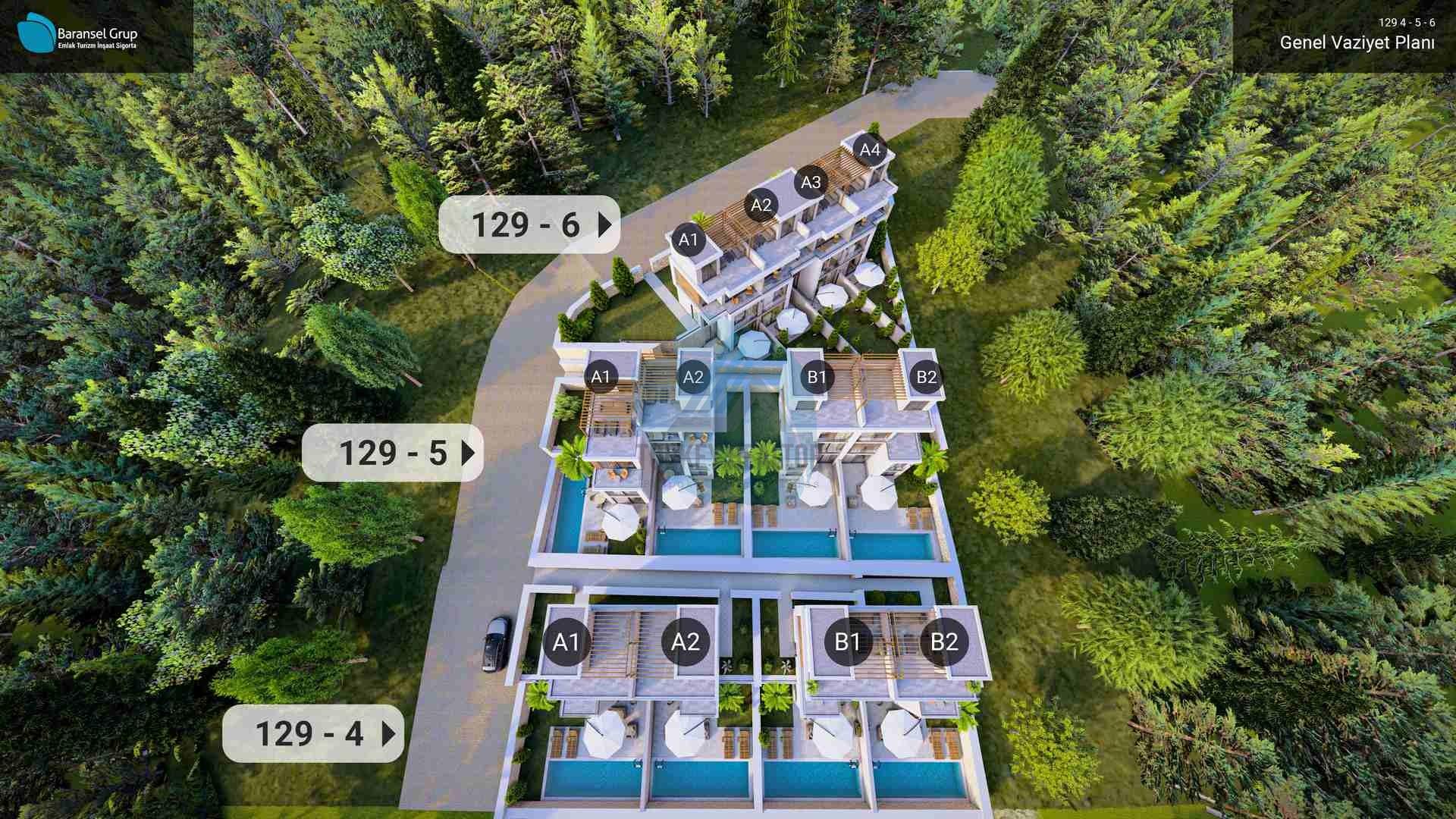 Baransel Group's BaTwin project, due to be completed in 2027, consists of a total of 12 privately pooled villas. The project has 7 different types of villa styles; each featuring 1, 2 or 2.5 bedrooms, a private pool and landscaped garden or terrace area. These villas also have a car parking space close by to their indivual enterances, allowing car owners to park with ease.
